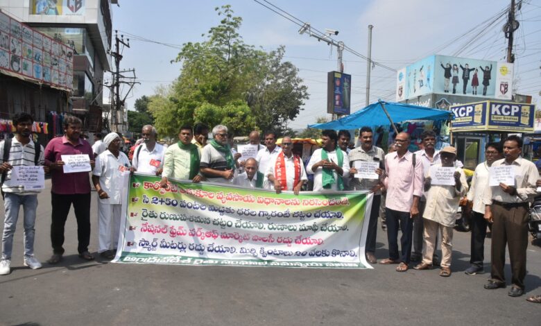 Vijayawada: Andhra Pradesh farmers staged protests across district centers on Wednesday, demanding the central and state governments fulfill promises made during the 2021 Delhi farmers’ movement. At a dharna held at Vijayawada’s Lenin Center on Wednesday, leaders of various farmers’ associations criticized policies that they claim favor corporate interests over agricultural welfare.