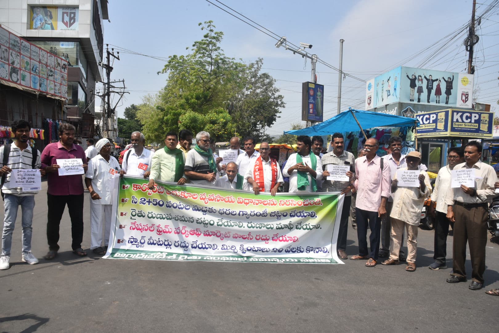 Addressing the protest, Andhra Pradesh Rythu Sangham Samiti State Convener Vadde Shobhanadriswar Rao accused the central government of betraying farmers by failing to implement recommendations from the parliamentary committee on minimum support prices (MSP) and financial assistance. He also condemned the proposed Electricity Amendment Act and new agricultural policies, alleging they would push small farmers into corporate control.