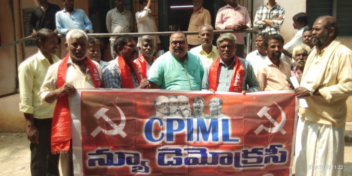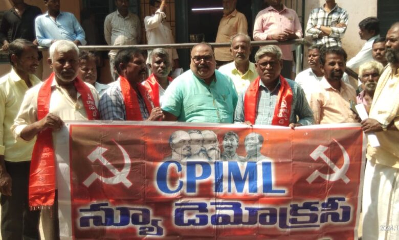 Yemmiganur – Andhra Pradesh: CPI (ML) New Democracy district leaders, led by M. Satyanna, demanded that authorities provide basic facilities at the Yemmiganur town sub-register office, citing severe inadequacies affecting visitors. The protest took place outside the office on Tuesday, drawing attention to the need for infrastructural improvements to support the public.