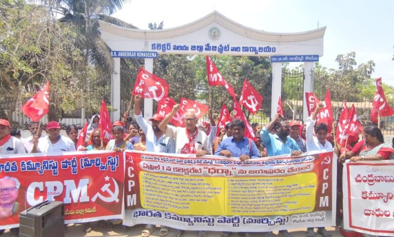 The CPM issued a comprehensive list of demands, including redistributing lakhs of coconut trees encroached by landlords to the poor, providing housing for all, and improving Jagananna colony layouts. They called for halting forced loan collections from Tidco house residents, ensuring 200 days of employment at Rs 600 daily for agricultural workers, and resolving fishing village issues with retaining walls in Bodasakurr and Pallipalem. Additional demands included basic amenities in Dalit villages, state-funded cemeteries, and removing liquor shops near villages.