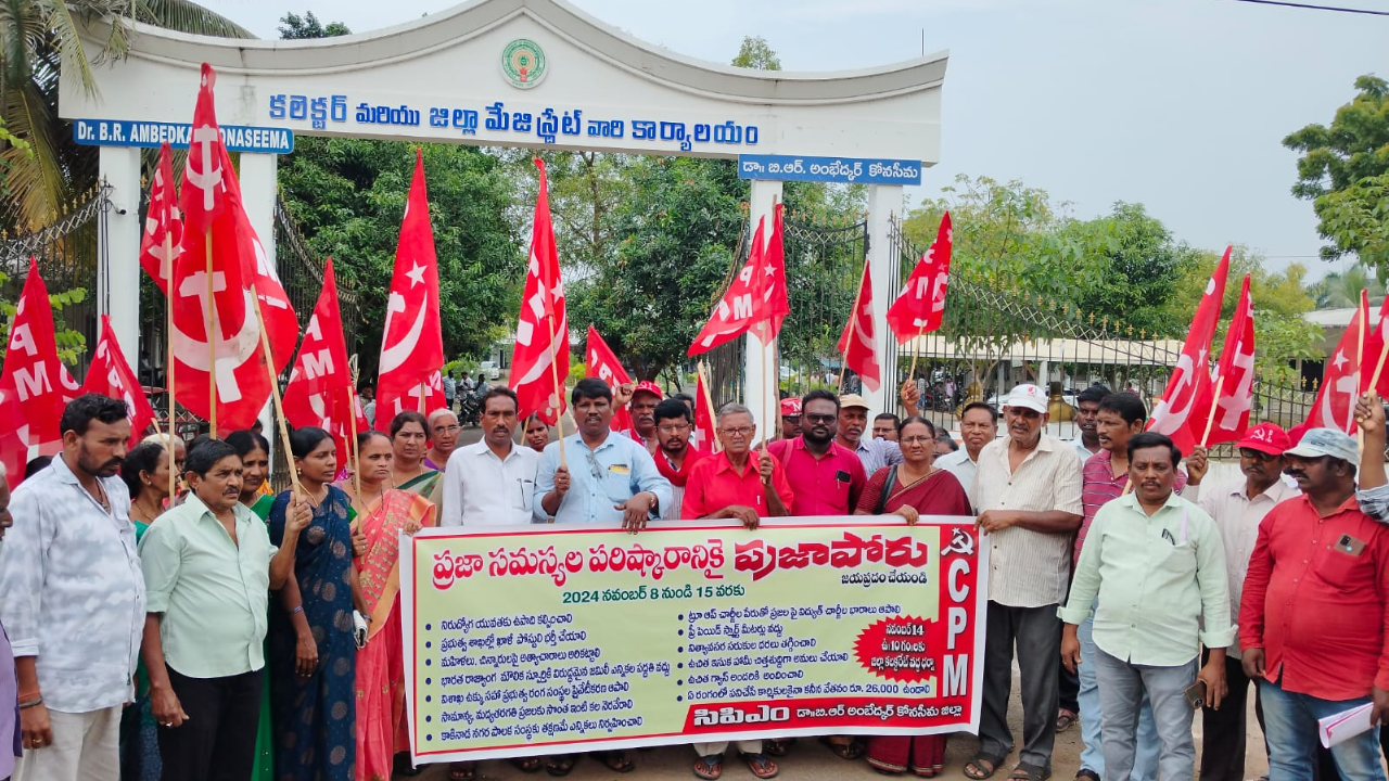 The protest was attended by CPI(M) leaders, including district committee members K Krishnaveni, G Durga Prasad, N Balaram, K Naga Varalakshmi, Peethala Ramachandra Rao, and numerous mandal leaders and activists across the district, including Seeyagala Rambabu, Mudeh Chinna Satyanarayana, Pamu Balayya, Dommeti Veera Raghavulu, T Lavaraju, Tadi Sriram Murthy, and others, demonstrating a united front in their call for change.