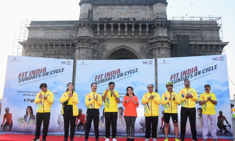 Mumbai: The flagship event of the Fit India Movement, ‘Sundays on Cycle,’ was held at Mumbai’s iconic Gateway of India on Sunday. Over 500 cyclists, including wellness experts, cycling club members, and fitness enthusiasts, participated in the ride, which concluded at Girgaon Chowpatty via the scenic Marine Drive. The event aimed to raise awareness about leading a fit and healthy lifestyle while promoting cycling as an eco-friendly mode of transport to combat pollution.