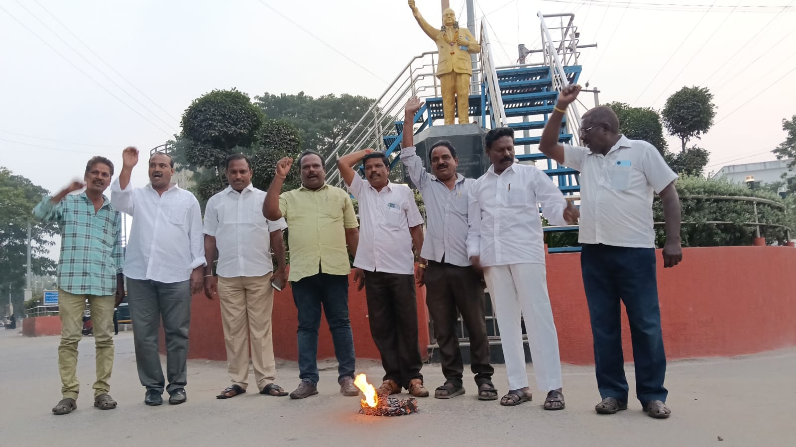 The protest was attended by Dalit Praja Vedika State President Kommita Dhananjay Rao, All India Dalit Rights Forum District President V Damodaram, MRPS District President Pulikanti Ramesh, TDP leaders Raja, Nagabhushanam, Ramanachari, and others.