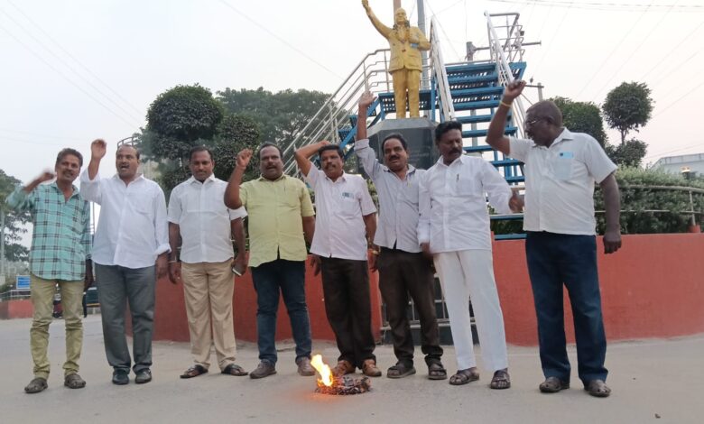 The protest was attended by Dalit Praja Vedika State President Kommita Dhananjay Rao, All India Dalit Rights Forum District President V Damodaram, MRPS District President Pulikanti Ramesh, TDP leaders Raja, Nagabhushanam, Ramanachari, and others.