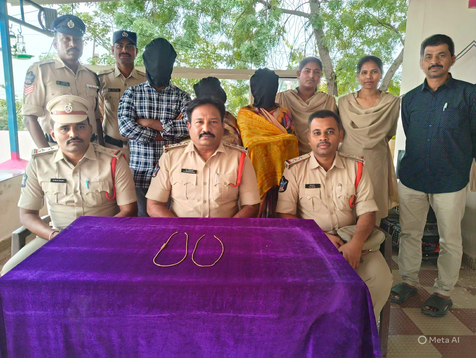 Proddatur – Andhra Pradesh: In a major breakthrough, Proddatur Rural Police arrested an interstate gang involved in bag lifting and gold chain snatching incidents targeting women in crowded areas of Kadapa district, recovering stolen gold chains and the vehicle used in the crimes.