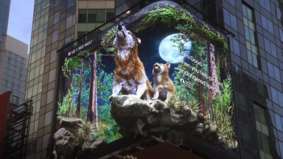 Each featured animal is brought to life in stunning 3D, appearing to extend out of the actual display overlooking Times Square. In partnership with the National Wildlife Federation (NWF) and Discovery Education, LG is also producing and distributing free educational materials on endangered animals online.