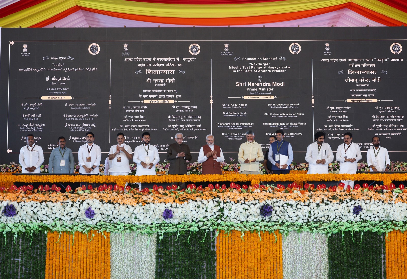 Modi announced the DRDO Missile Testing Range in Nagayalanka at a cost of Rs 1,460 crore. It will include a launch center, radars, and telemetry systems, enhancing India’s defense readiness. The PM linked the project to spiritual strength, saying it draws power from Maa Durga.