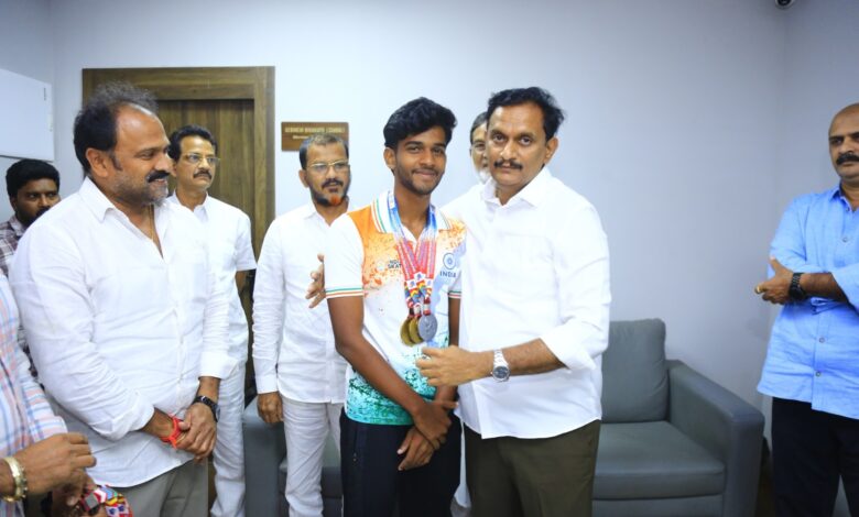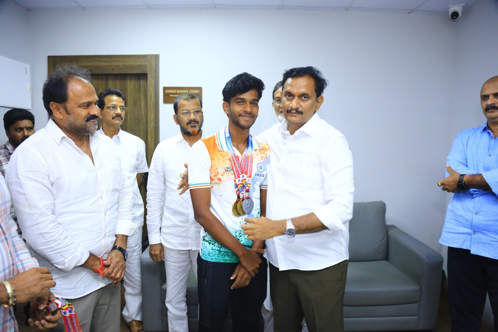 Vijayawada – Andhra Pradesh: Vijayawada MP Kesineni Sivanath lauded the exceptional achievements of P Tejesh, who bagged six medals at the 62nd National Roller Skating Championship held in Pollachi, Tamil Nadu.