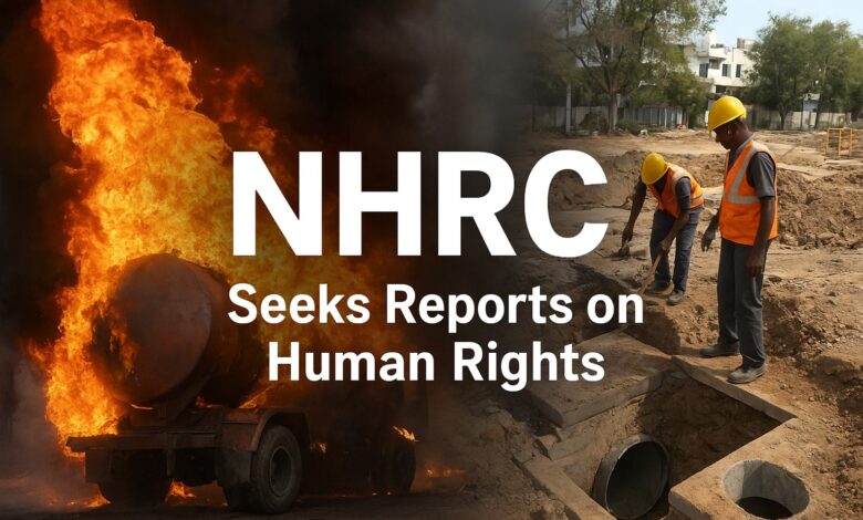 New Delhi: The National Human Rights Commission (NHRC), India, has taken suo motu cognizance of two separate media reports highlighting human rights concerns—one relating to the plight of victims of a deadly LPG tanker blast in Punjab and the other on the death of two sanitation workers in Tamil Nadu. In both cases, the Commission has issued notices to the respective authorities, seeking detailed reports within two weeks.