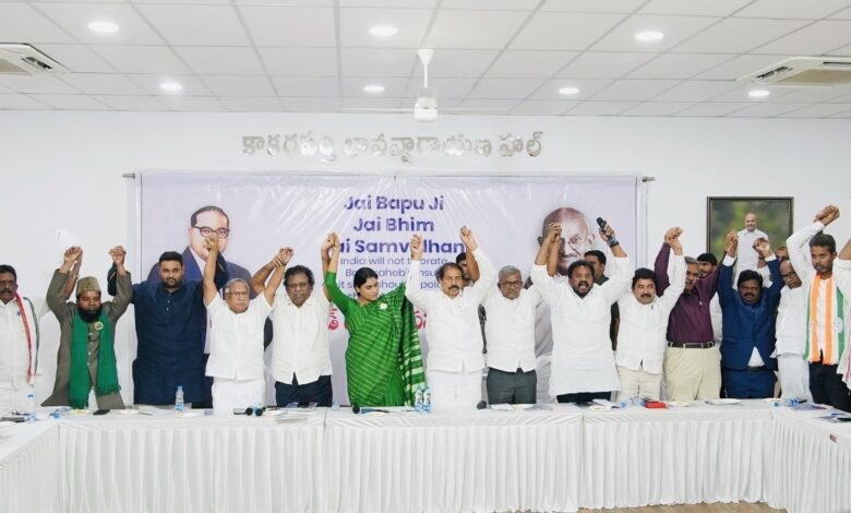 Vijayawada – Andhra Pradesh: The Andhra Pradesh Congress Committee (APCC), along with left parties, public organizations, and student bodies, convened a roundtable meeting to pass a resolution demanding the resignation of Union Home Minister Amit Shah. The resolution comes in the wake of Shah’s controversial remarks, which allegedly mocked Dr. B R Ambedkar, sparking outrage across political and social groups. The resolution will be forwarded to the President of India.