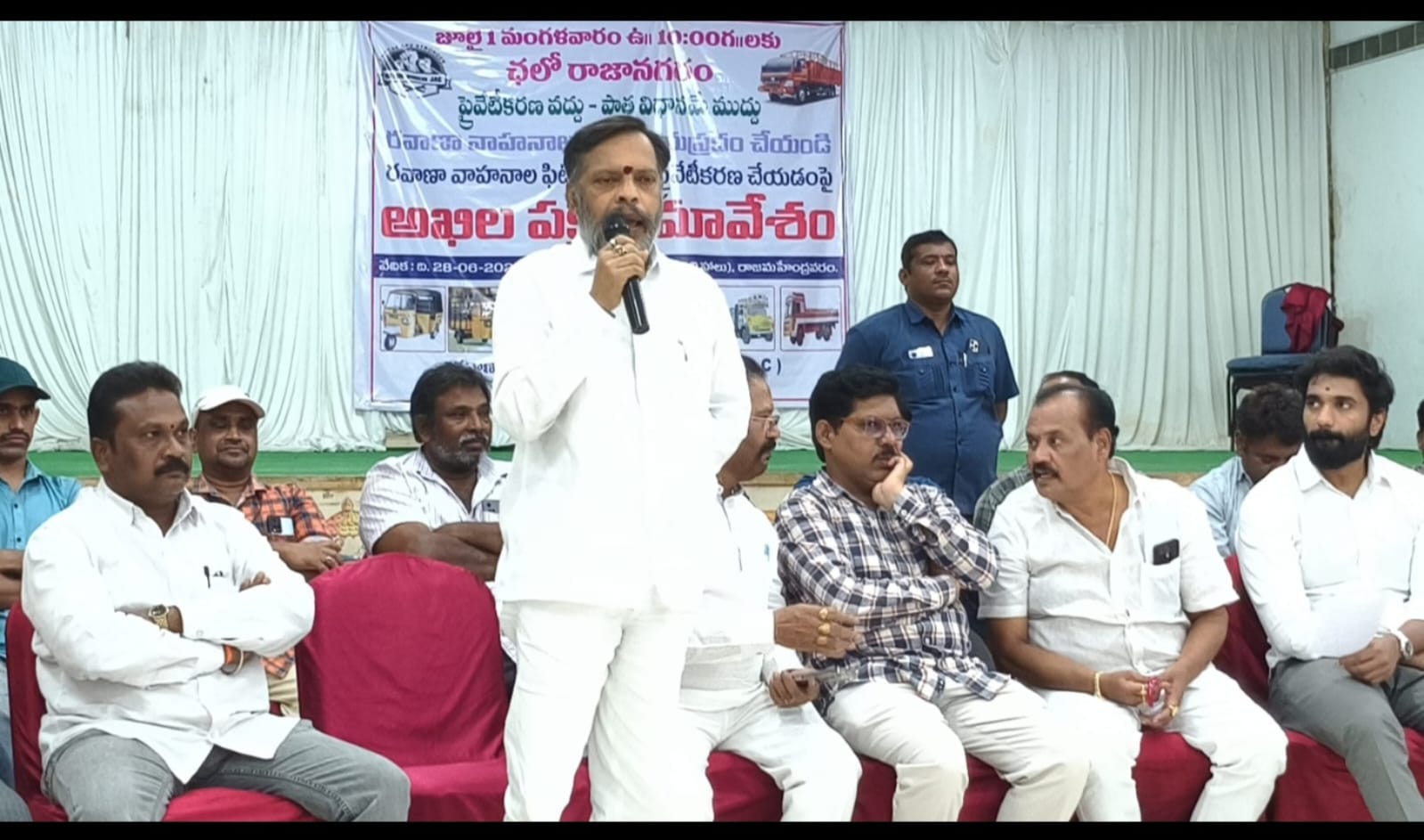 At an all-party meeting organized by the Joint Action Committee of Transport Motorists at Hotel Anand Regency’s Pandiri Hall, Meda Srinivas sharply criticized both central and state governments for allegedly siding with private companies at the expense of self-employed vehicle owners.