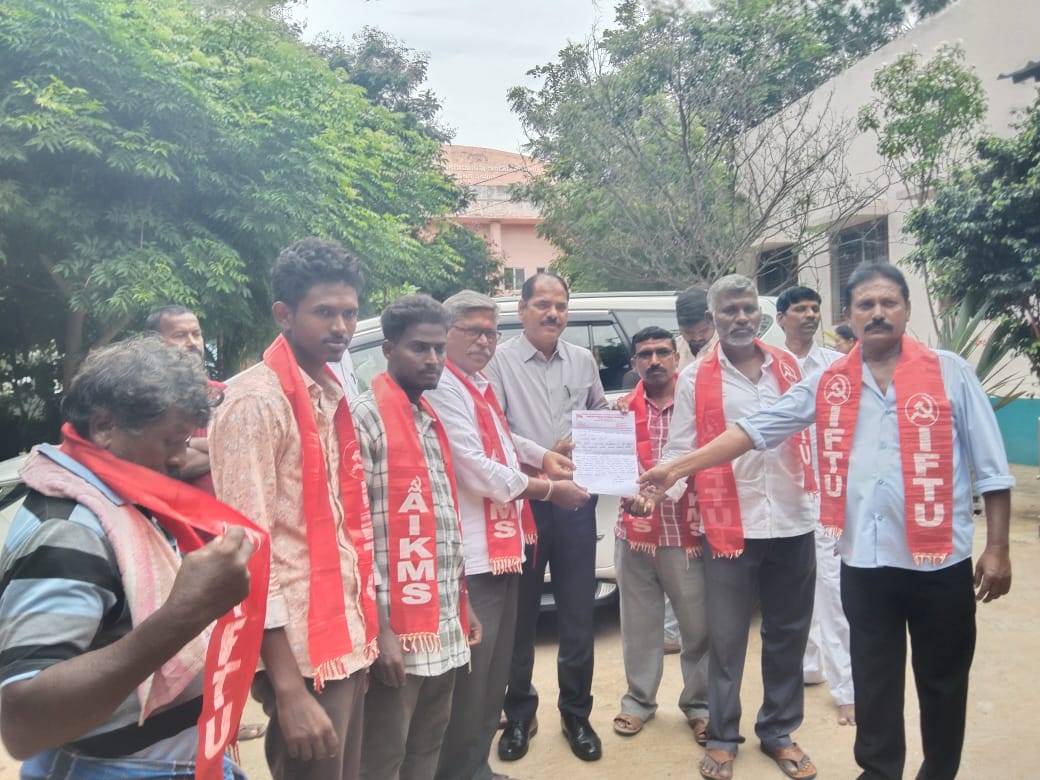 Yemmiganur – Andhra Pradesh: Sanitation workers of Yemmiganur Municipality, whose lives have remained unchanged despite shifting governments, submitted a memorandum to Municipality Commissioner Gangi Reddy on October 14. The workers, led by the Indian Federation of Trade Unions (IFTU) and AIKMS leaders, demanded better provisions and regularization of contract workers.