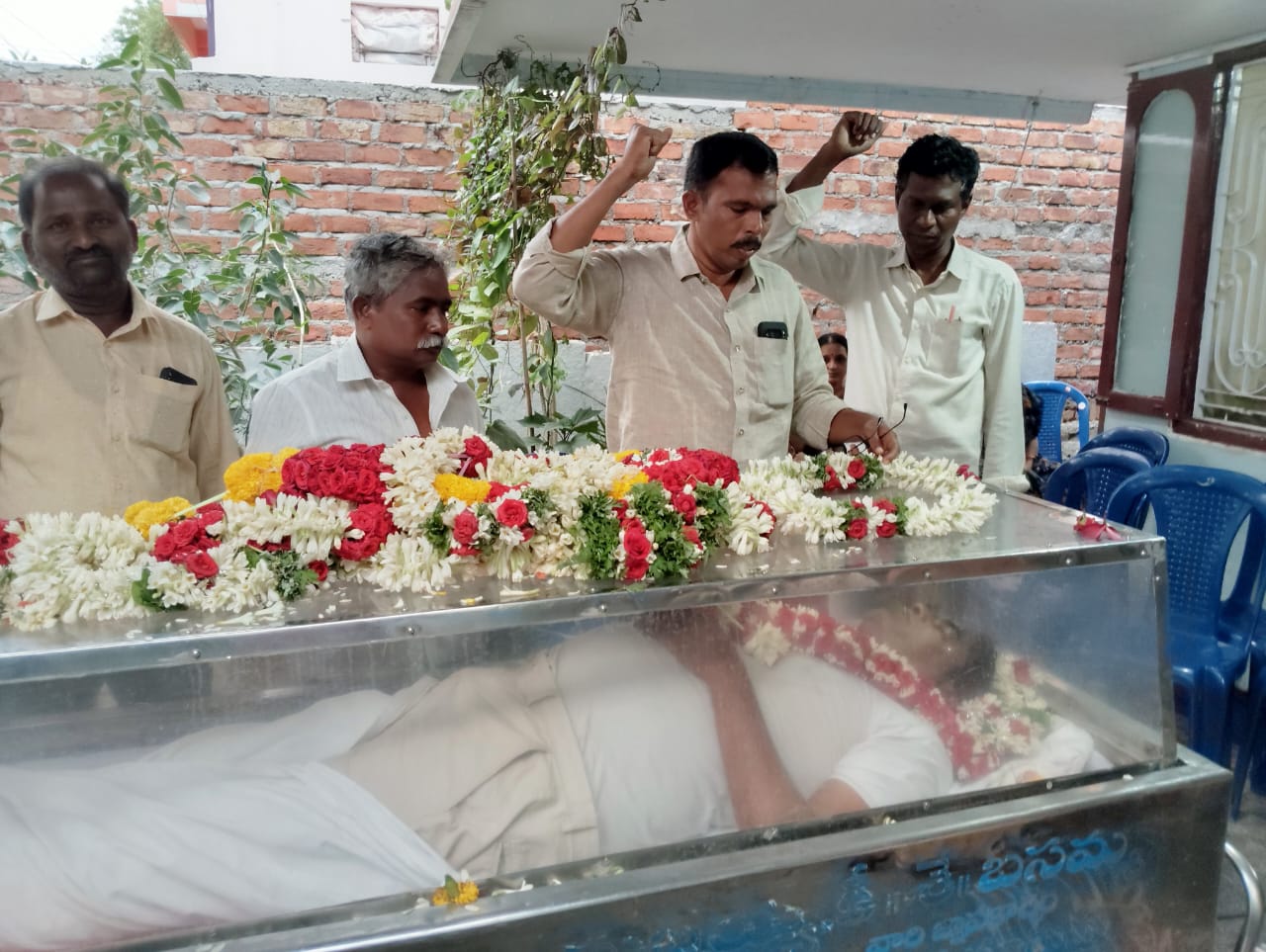 Mourners including Chapala Subbarayudu, Madagalam Prasad, Taslim, Lakshmi Devi, Venkatesh, Obulesu, and Chinna Subbaiah gathered at Shiva Reddy’s residence in Balaji Nagar, Kadapa, to pay floral tributes before the handover to RIMS. Cries of “Johar Puttha Shiva Reddy!” echoed in heartfelt farewell.