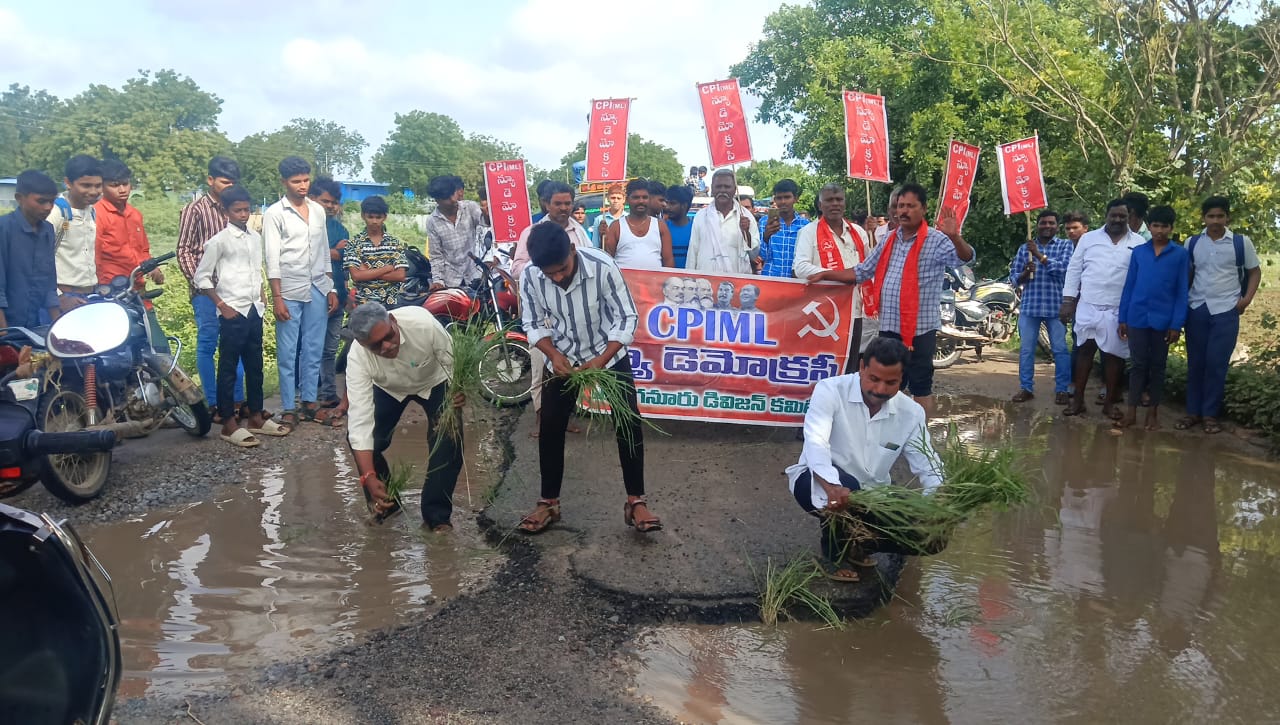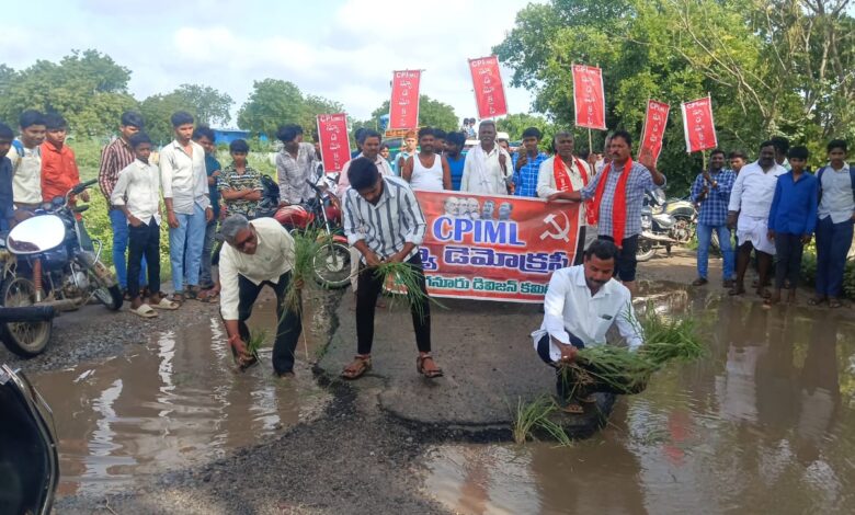 The CPI (ML) New Democracy and AIKMS leaders demanded that high-ranking officials and political leaders take immediate steps to construct a new road. Protestors accused the Roads & Buildings (R&B) department of failing to act despite repeated appeals. “Officials must stop turning a blind eye. This is not just negligence, it is endangering lives,” said AIKMS leader Anjaneyulu.