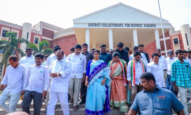 Kadapa – Andhra Pradesh: AP Congress Chief YS Sharmila staged a symbolic protest at the Kadapa Collector’s office, demanding immediate steps to establish the long-delayed Kadapa Steel Plant. She criticized successive governments for failing to honour promises made to the region, vowing to escalate their agitation if no action is taken.